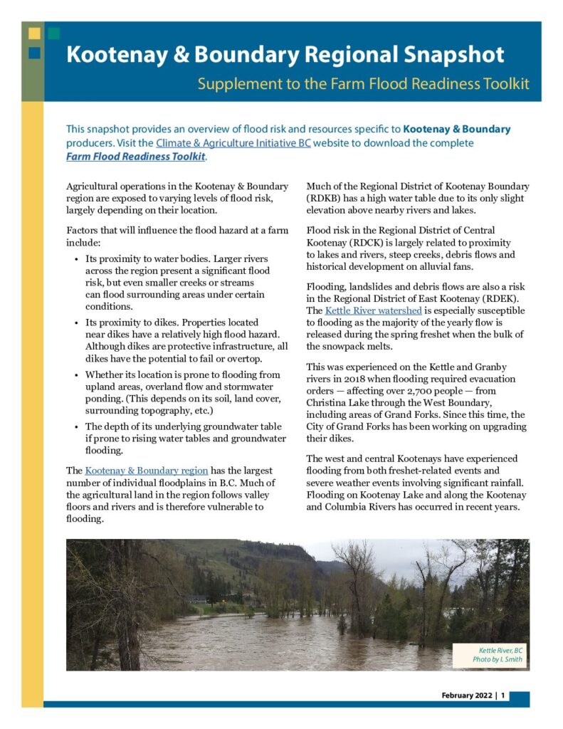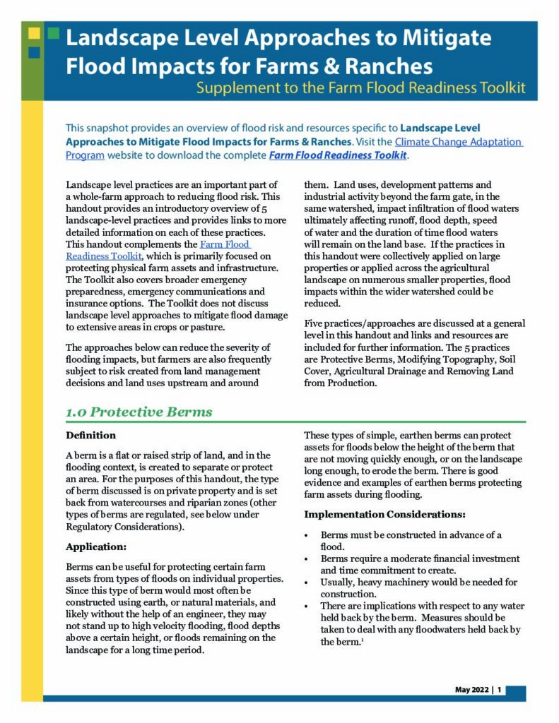 The toolkit includes eight fact sheets that provide information about topics ranging from determining flood risk level to protecting livestock. It also contains eight worksheets, as fillable PDFs, that can be used by producers to actively plan for specific operational needs.